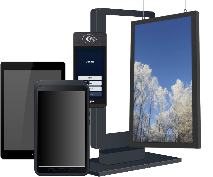 After that, simply add the features that match your needs – like self-checkout, payments, or a digital customer space. Need hardware? We’ve got you covered with screens and tablets ready to go.
